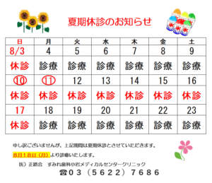 2025年夏休み休診のお知らせ